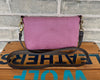 - Primrose pink nubuck leather with green stitching and plum tabs