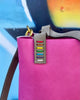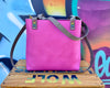 - Hot pink leather with oyster gray straps