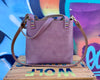 • Crushed grape nubuck leather with matching straps and aged bark crossbody strap