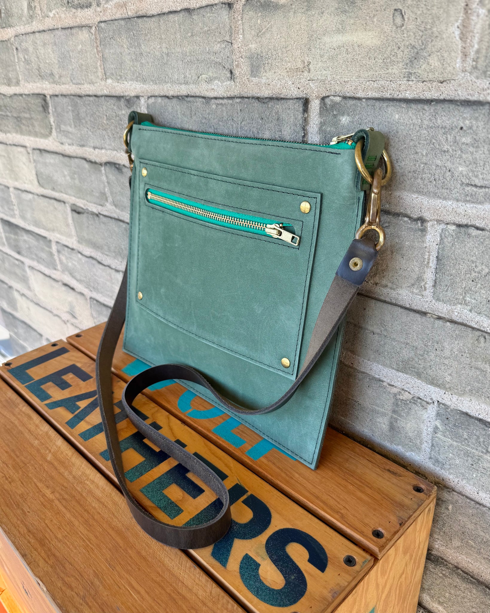 - Ivy green leather on the front and legendary green leather on the back with green zippers